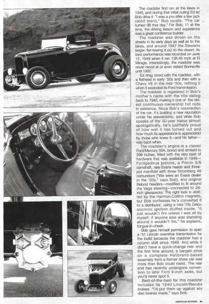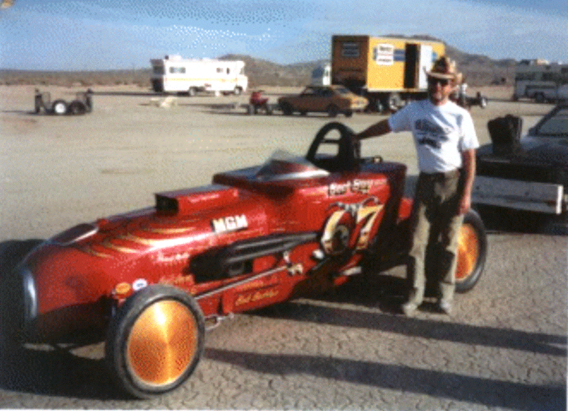 To give you an idea of the steel in his spine, we take you back to June 8th, 1986. McCoy and a few hundred others had gathered at El Mirage for an SCTA meet. With high winds that day, nobody wanted to run, expressing major concern for the cross winds across the dry lake bend. McCoy scoffed, took out his “Redhawk” ’25 Ford T track roadster, wound it up through the gears and blasted his way, cross-winds-be-damned to a 212mph run good for top speed of the meet!