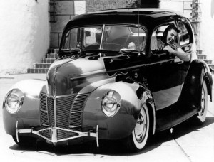 Everybody noticed in the early ‘50s when, as a precocious, imaginative teenager, McCoy created a sensation with a ’40 Ford Tudor that established an entire new look and character for street-driven hot rods. His wildly flamed black sedan was soon seen nationwide on magazine covers and in feature articles and continues to influence street rod design to this day. The car also spent a lot of time at Paradise Mesa Drag Strip near San Diego as well as any street where Bob could find competition for the full-house flathead-powered sedan.