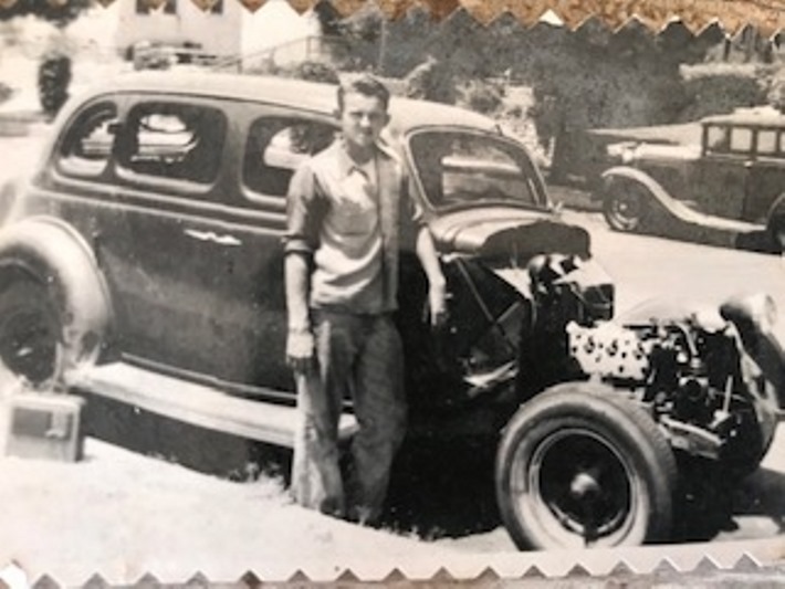 2. 1950 Bob Stewart posing with vicky before top was chopped